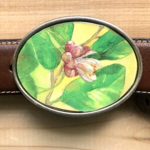 • Vintage Tin Belt Buckle Key Lime Blossom under Resin