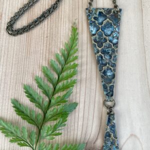 • Vintage Tin Graphic Floral Trapezoid Necklace