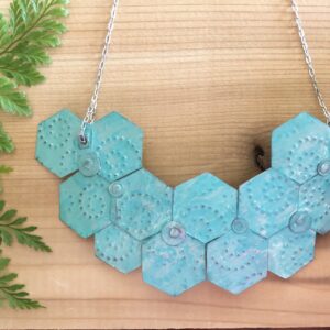 Vintage Tin Necklace Patina Hexagon Set