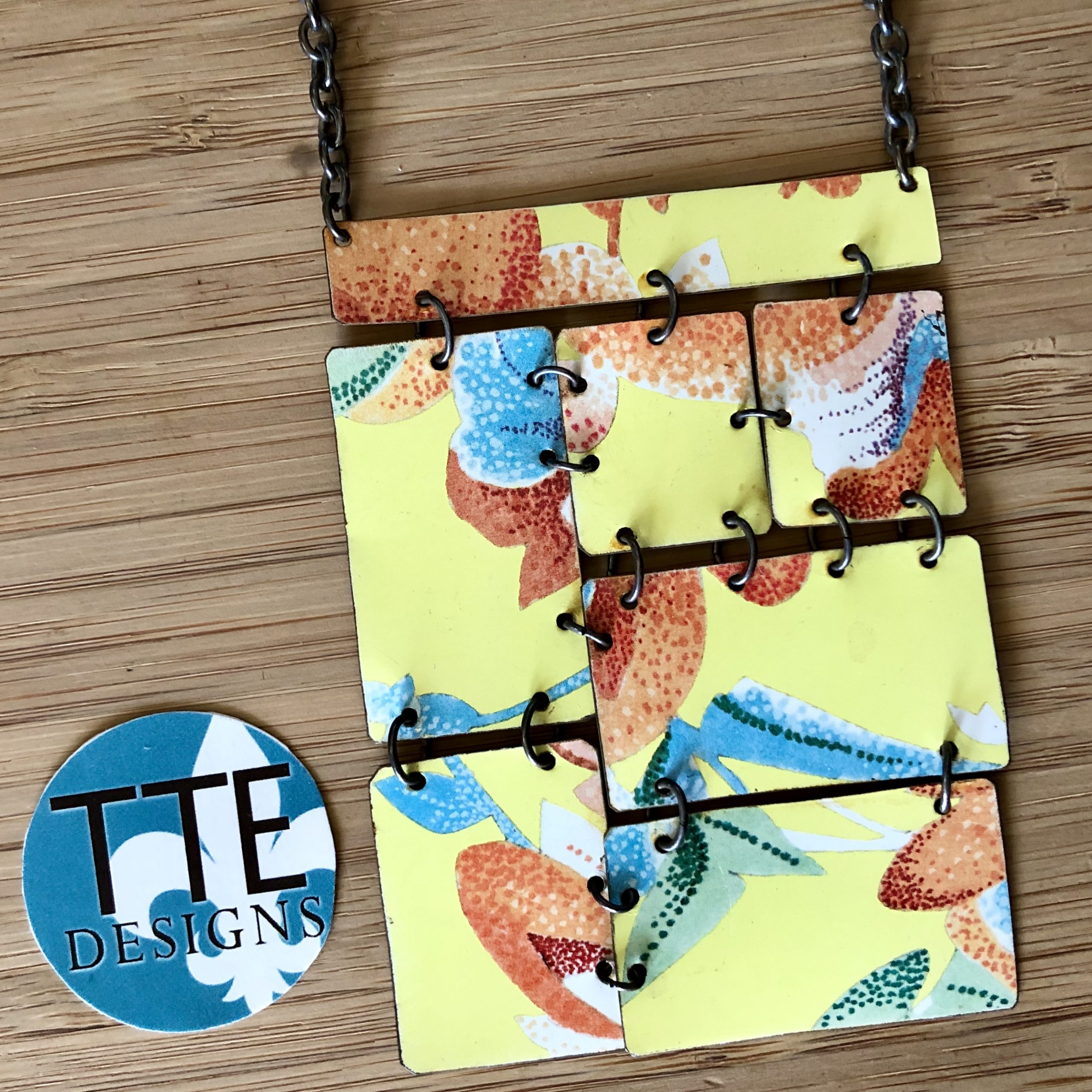 Vintage Tin Graphic Floral Trapezoid Necklace