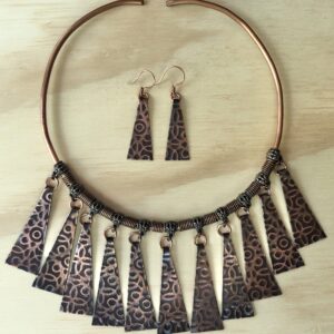 Embossed Copper Triangles Statement Collar Necklace & Earrings Set